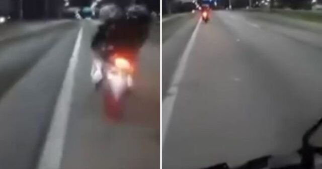 Um avião a motor abordou um jovem enquanto viajava a 100 km/h na rodovia e o assalto foi registrado em vídeo.