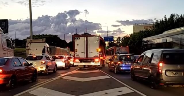 O trânsito ficou caótico no cruzamento entre a Rodovia Pan-Americana e a Avenida General Paz depois que um caminhão colidiu com um guarda-corpo.