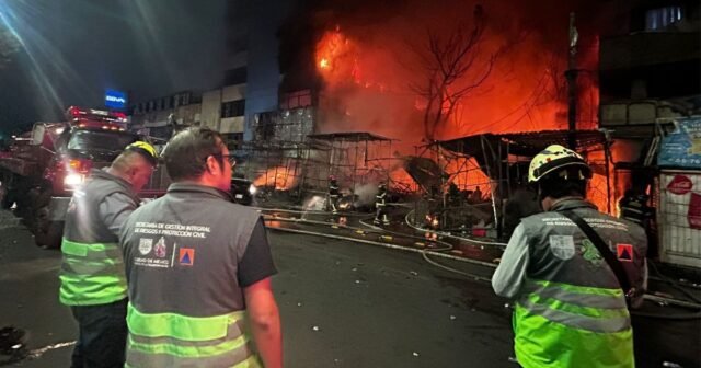 A chama, vista de diferentes perspectivas Mercedcomeçou com um posto semifixo na rua Fray Servando Teresa de Mier, onde eram armazenados foguetes. O fogo logo se espalhou e atingiu o segundo andar do prédio, obrigando vizinhos e lojistas a fugirem.