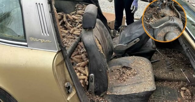 Um homem encontrou um Porsche 1970 que estava enterrado em uma pinha há 31 anos: um refúgio para esquilos