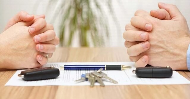 Uma foto de um acordo de divórcio.