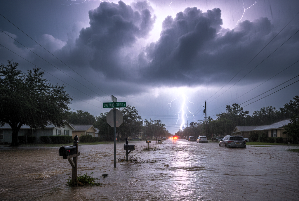 Titusville, Flórida – 27 de outubro de 2025 – A Flórida Central, especialmente o condado de Brevard, está enfrentando inundações significativas, já que um alerta de enchente permanece em vigor até a manhã de segunda-feira, após fortes chuvas que caíram 11 polegadas na área de 11 polegadas. O Serviço Meteorológico Nacional (NWS) em Melbourne emitiu e estendeu vários avisos, incluindo avisos de enchentes repentinas para Titusville, Mims e Port St. JOKY A ameaça de tempestades severas, incluindo rajadas de mais de 50 milhas por hora e rajadas terrestres e terrestres do furacão Melissa ao sul, foi acompanhada por uma ameaça de tempestades severas.