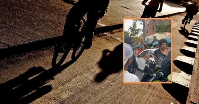 A Polícia de Cúcuta prendeu o homem acusado de roubar a bicicleta de um menor, caso registrado por testemunhas – crédito Colpresa/Captura de vídeo