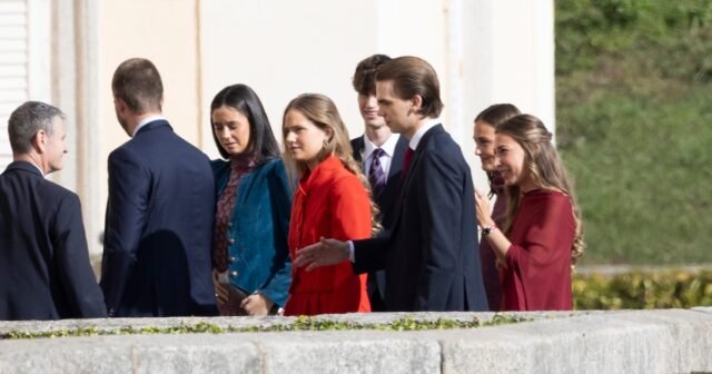 Juan Urdangarin, Victoria Federica, Irene Urdangarin, Pablo Urdangarin e Miguel Urdangarin chegando ao Palacio El Pardo, no dia 22 de novembro de 2025, em Madrid (Espanha). (José Ruiz/Europa Press).