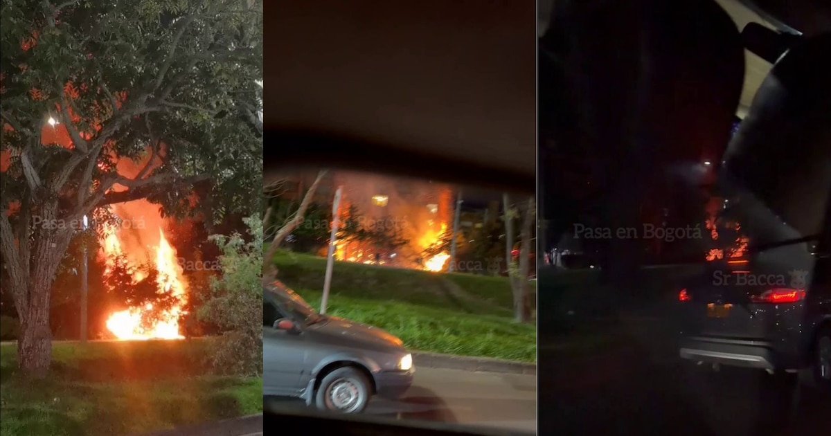 As chamas se espalharam pela vegetação nas ruas 127 e 15 enquanto os cidadãos observavam a emergência. – crédito @PasaenBogota/X